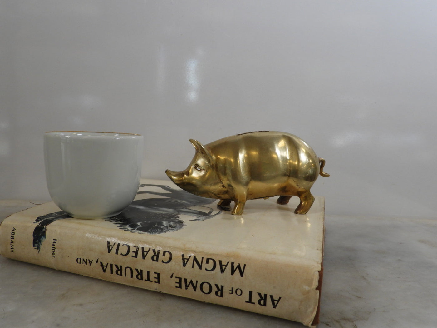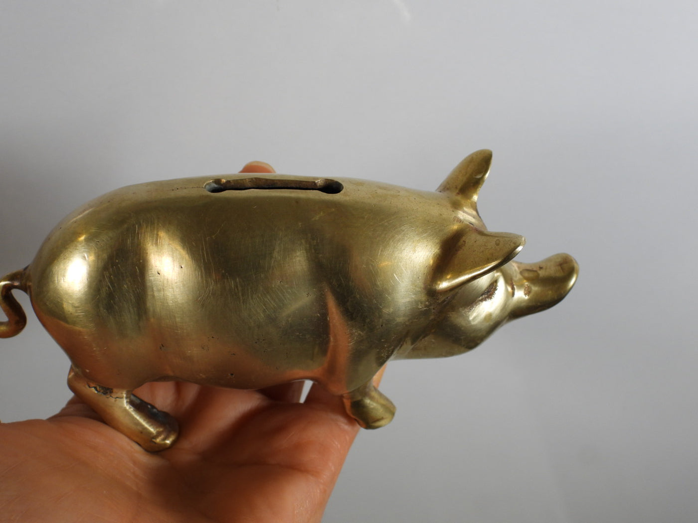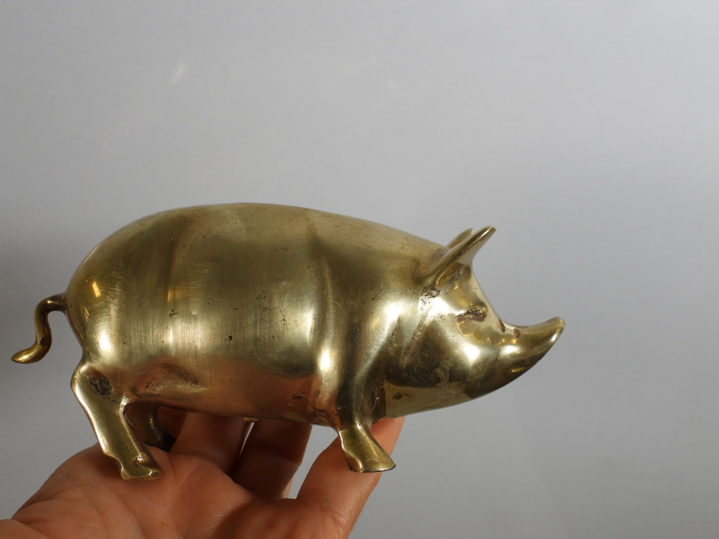 The Brass Piggy Coin Bank is a unique and stylish antique piece with an Art Deco design. Made of brass in Turkey, this coin bank features intricate detailing and craftsmanship. Perfect for adding a touch of vintage charm to any collection or decor, this piece is both functional and decorative, making it a standout addition for any enthusiast of antique items.