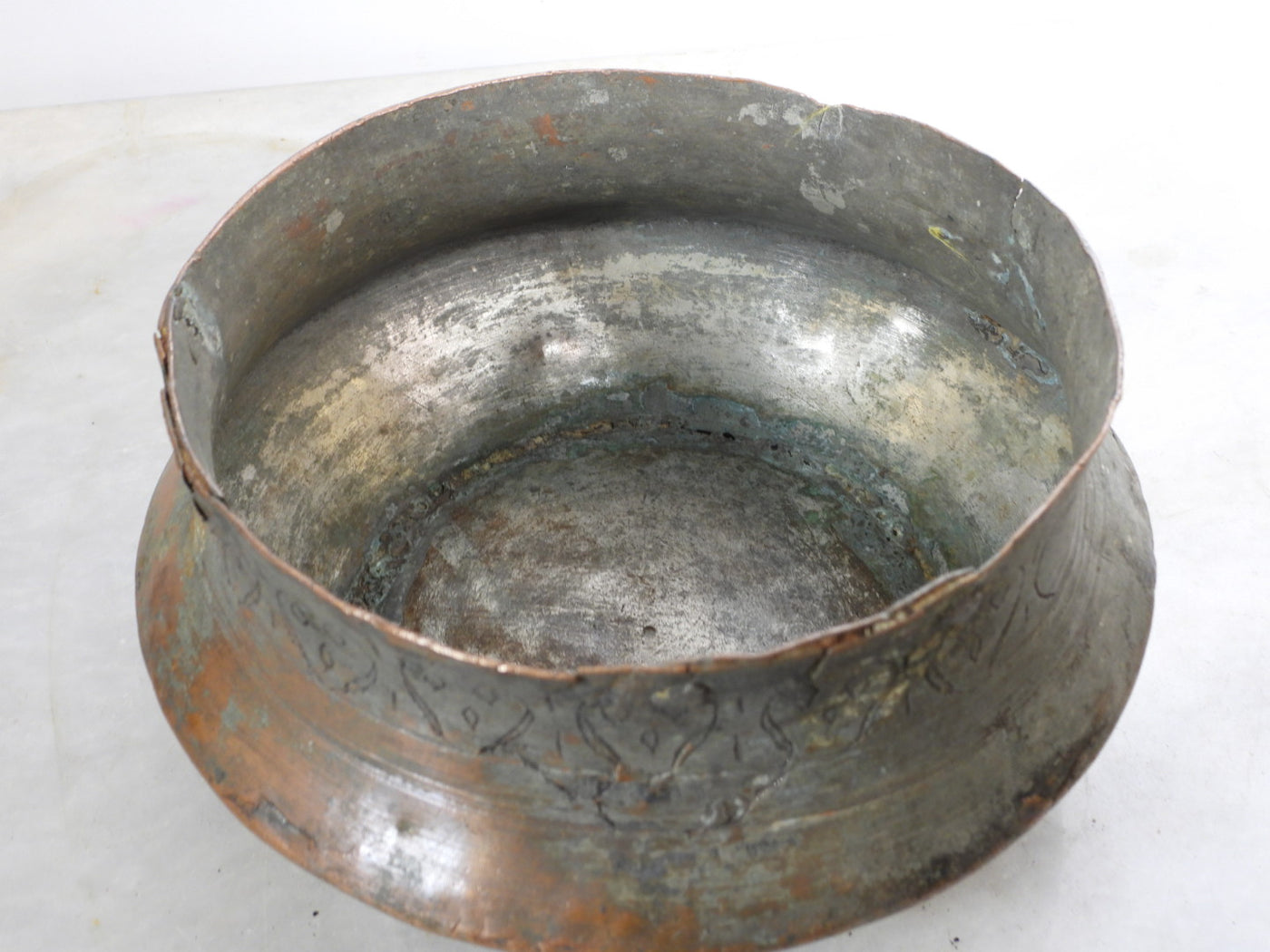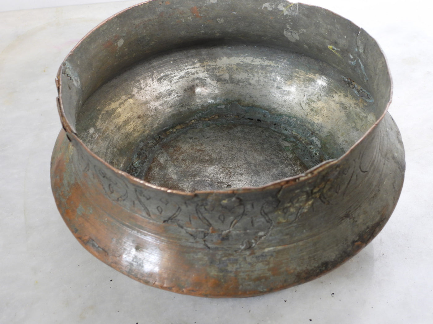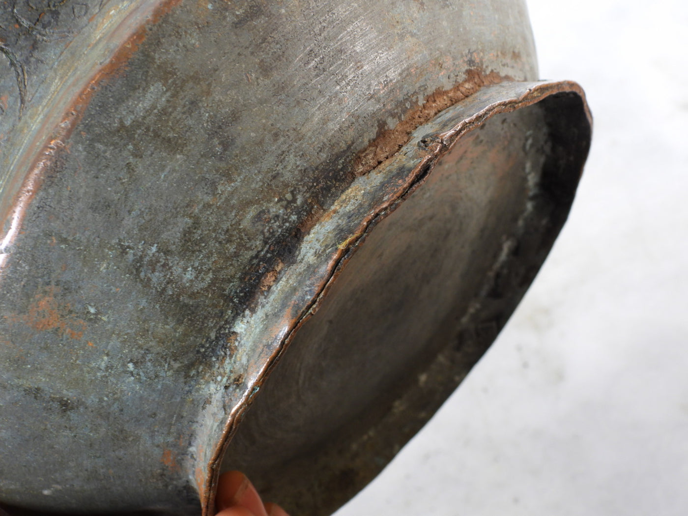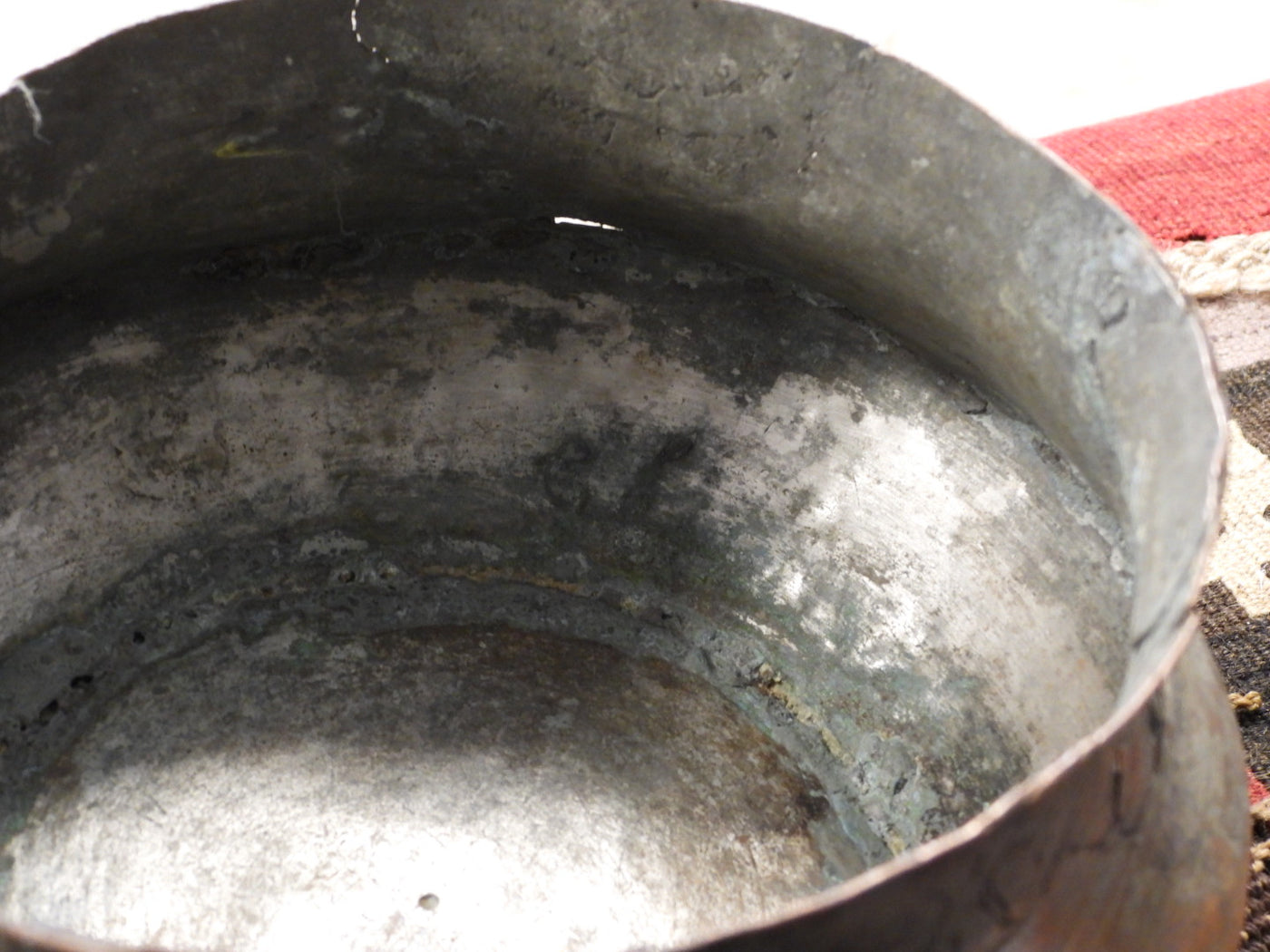 • Material: Solid Copper with remnants of traditional tin lining.